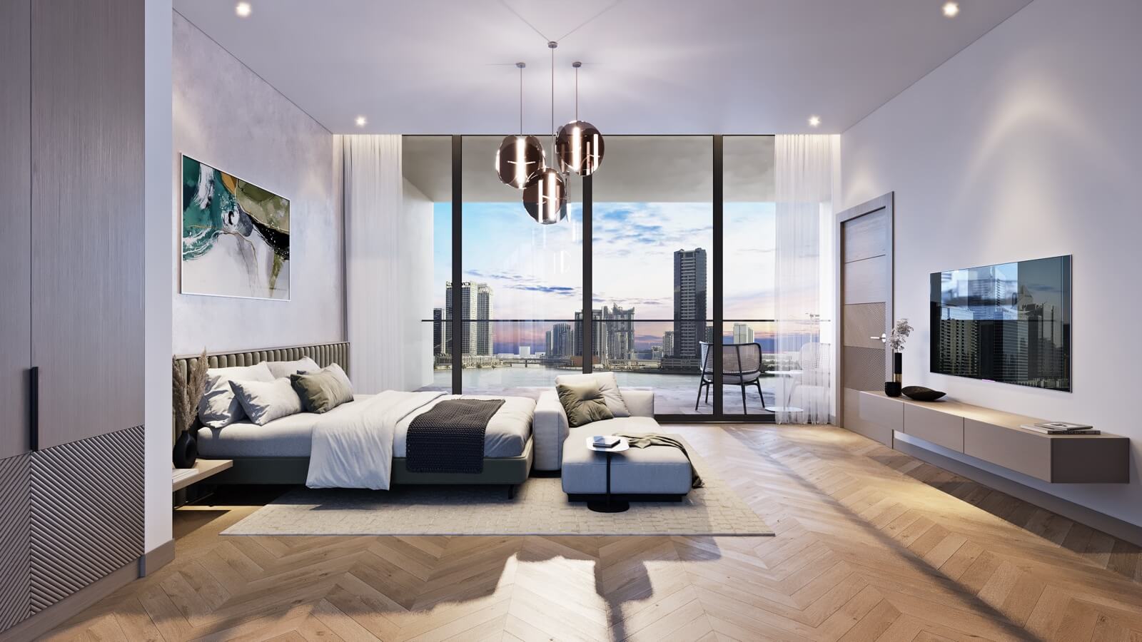 Peninsula Four, The Plaza features two 52-storey towers and 16 premium waterfront duplex lofts, offering studios to four-bedroom units. Each home is thoughtfully designed with open layouts and floor-to-ceiling windows, showcasing stunning views of Downtown Dubai, the Burj Khalifa, the skyline, and the Dubai Canal.
